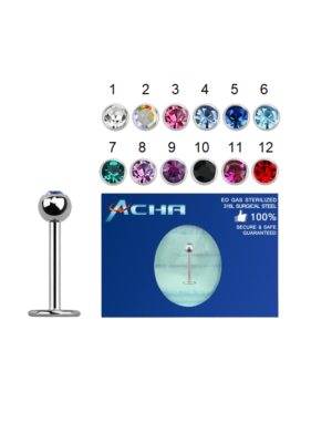 Sterilus chirurginio plieno auskaras į lūpą su kristalu