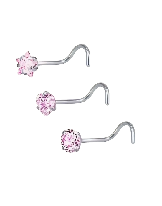 Papuošk savo įvaizdį švelniai spindinčiu ir moterišku nosies auskaru su rožiniu kristalu, kuriam galima pasirinkti net tris skirtingas formas: žvaigždę, širdelę arba apvalų kristalą. Tai puikus aksesuaras toms, kurios nori subtilaus, bet akį traukiančio akcento.