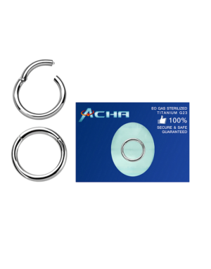 Auskaras sterilizuotas EO dujomis, todėl visiškai paruoštas saugiam naudojimui. Segmentinis užsegimas užtikrina lengvą atidarymą ir tvirtą užsifiksavimą – puikiai tinka nosies, ausies, lūpos, antakio ar kitoms auskaro vietoms.